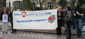 Hier ein Bericht über Aktionen gegen den Besuch eines Jugendoffiziers am John-Lennon-Gymnasium am 28.10.2011. Auch hier und hier könnt ihr euch Anregungen holen, welche Aktionen ihr machen könnt, um auf eure Wut aufmerksam zu machen.